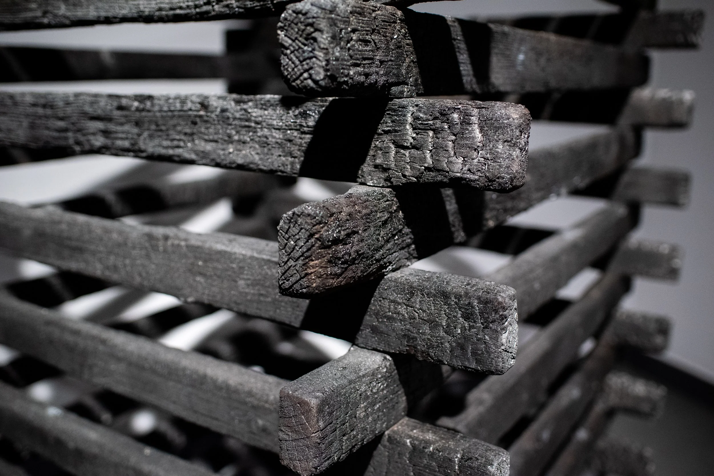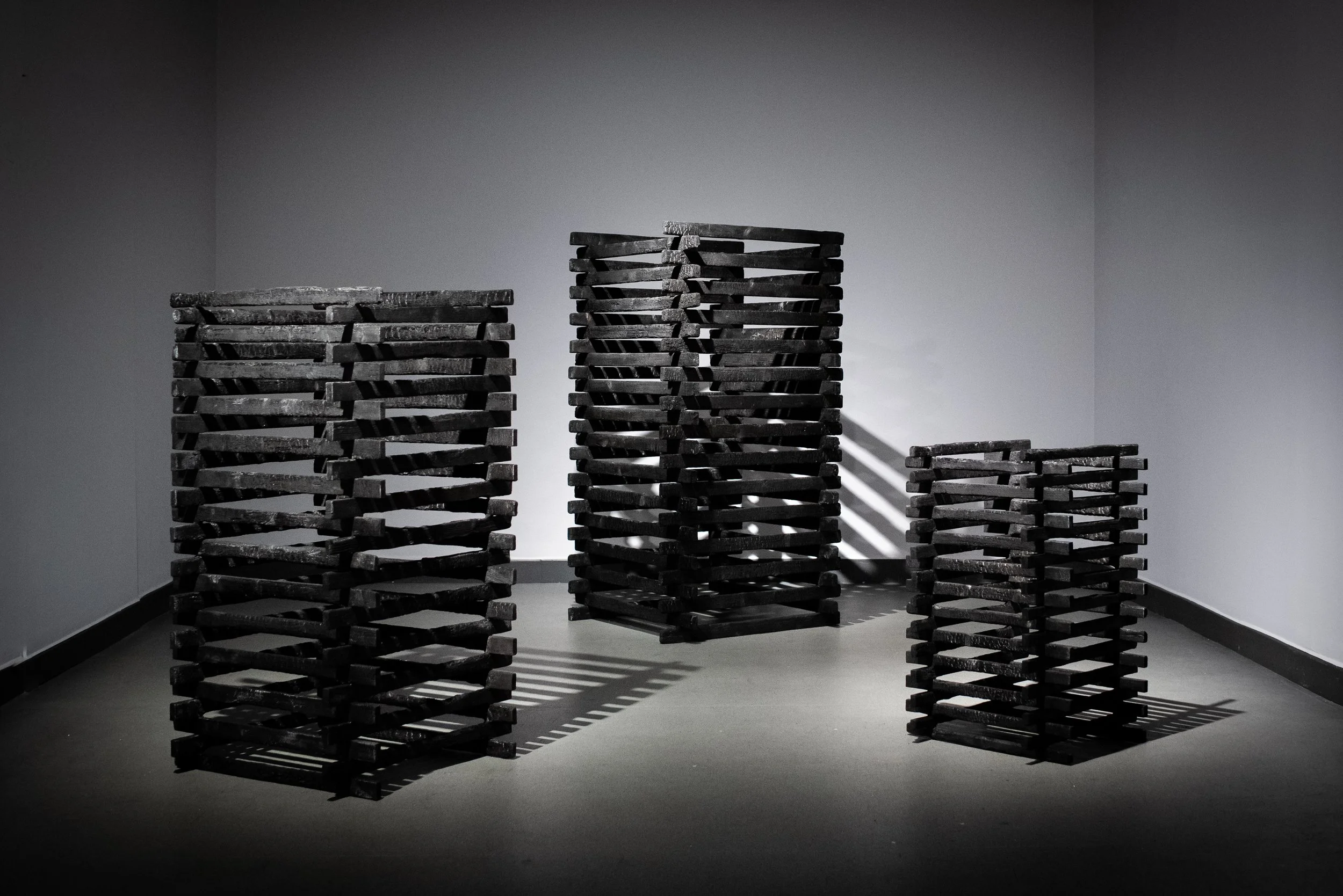 Castilletes – madera quemada / 3 uds. de 110 x 110 x 200 cm, 90 x 90 x 160 cm y 70 x 70 x 110 cm / conjunto: dimensiones variables / 2016
